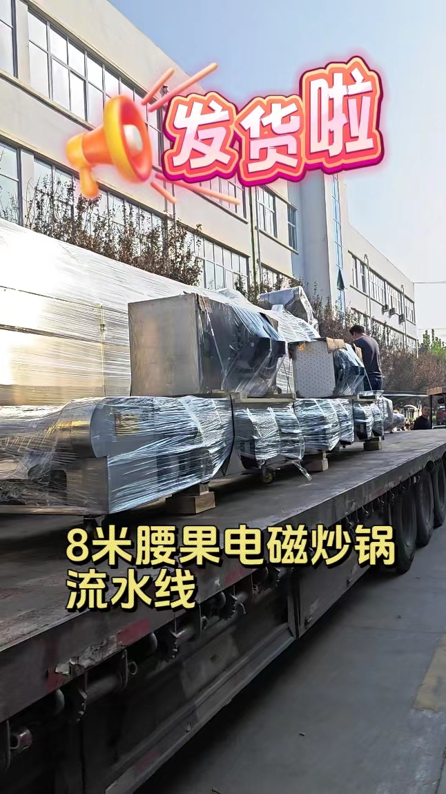 許昌智工8米電磁炒貨流水生產(chǎn)線裝車發(fā)往廣西,炒制進(jìn)口大腰果