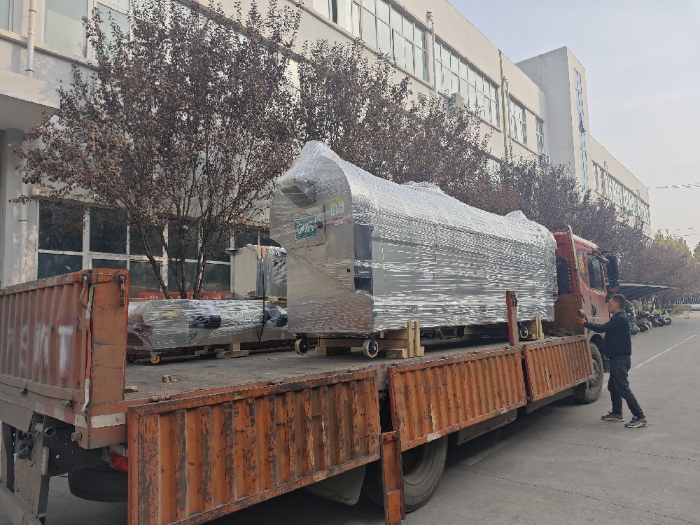 11月23號許昌智工4米電磁流水線裝車發(fā)往山東炒制阿膠珠