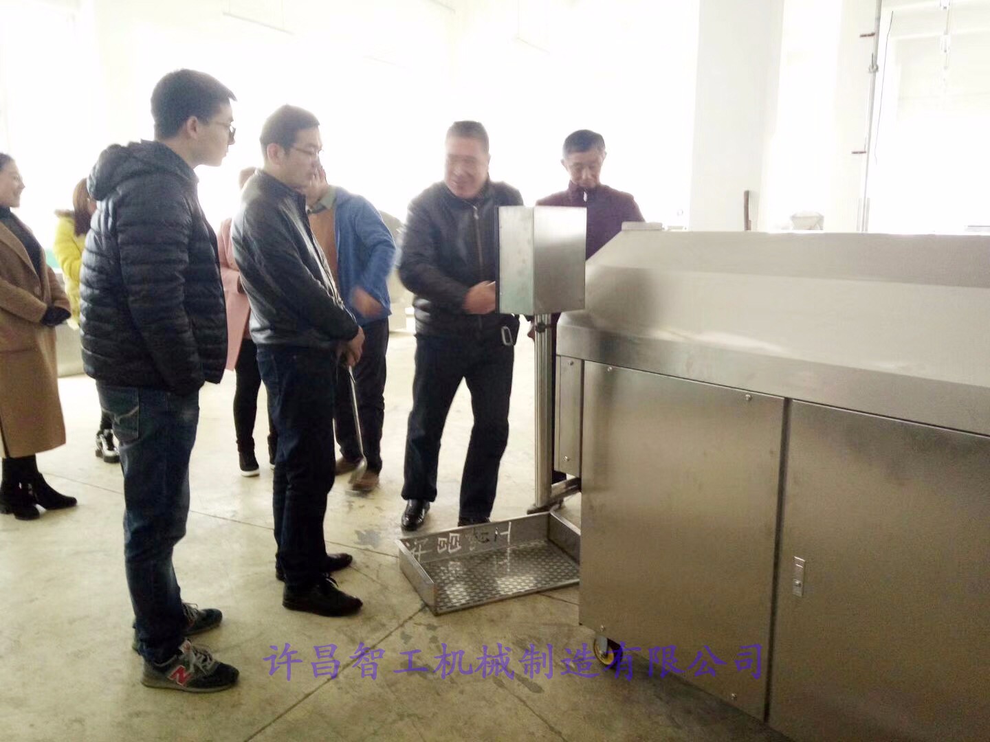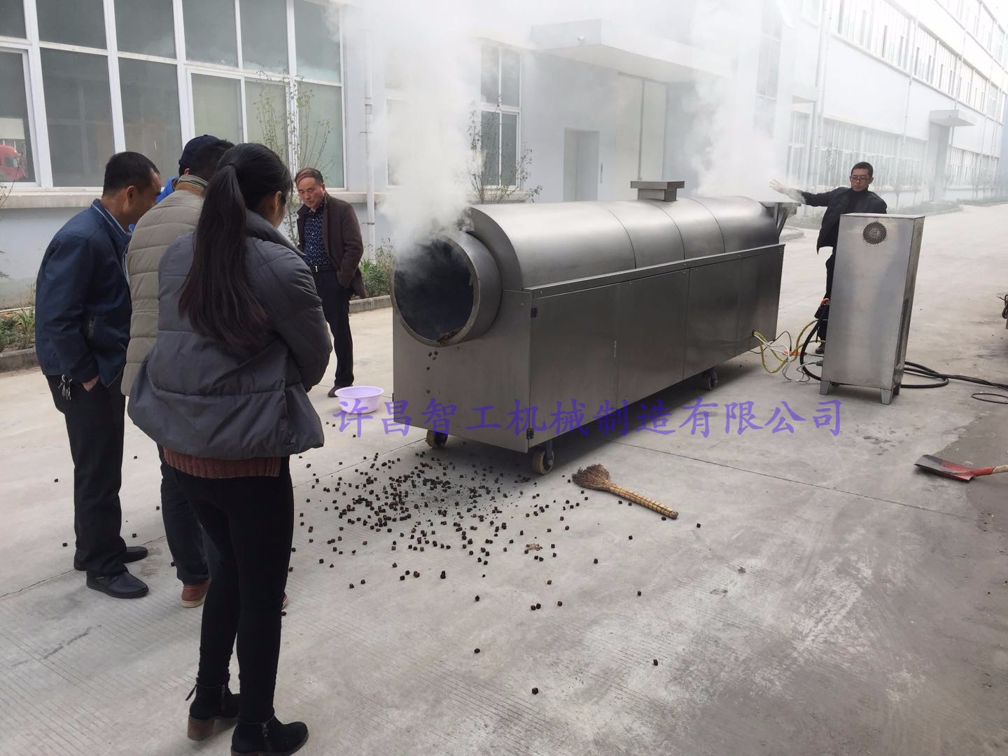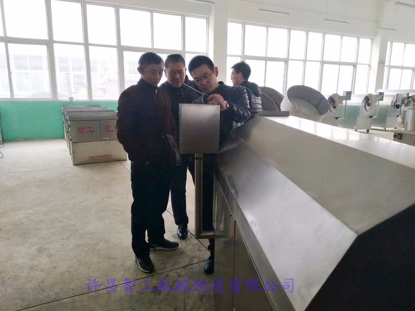 許昌智工多功能炒貨機吸引各行業(yè)老板來廠考察試機