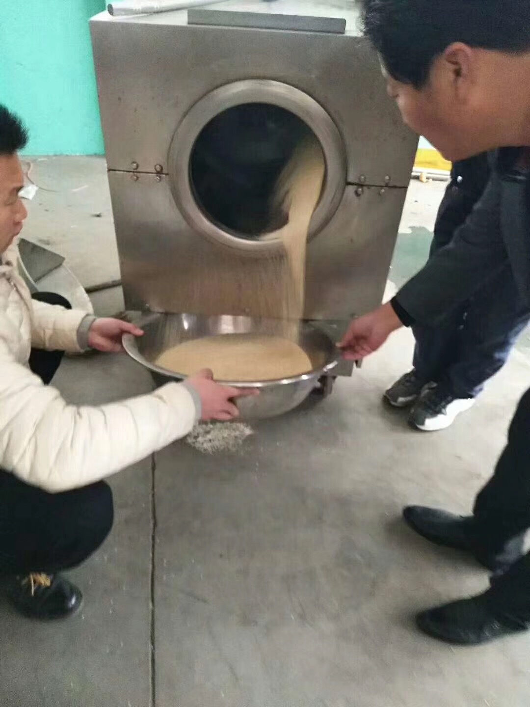 客戶來(lái)廠試機(jī)炒制脫皮芝麻,效果非常滿意(附圖)