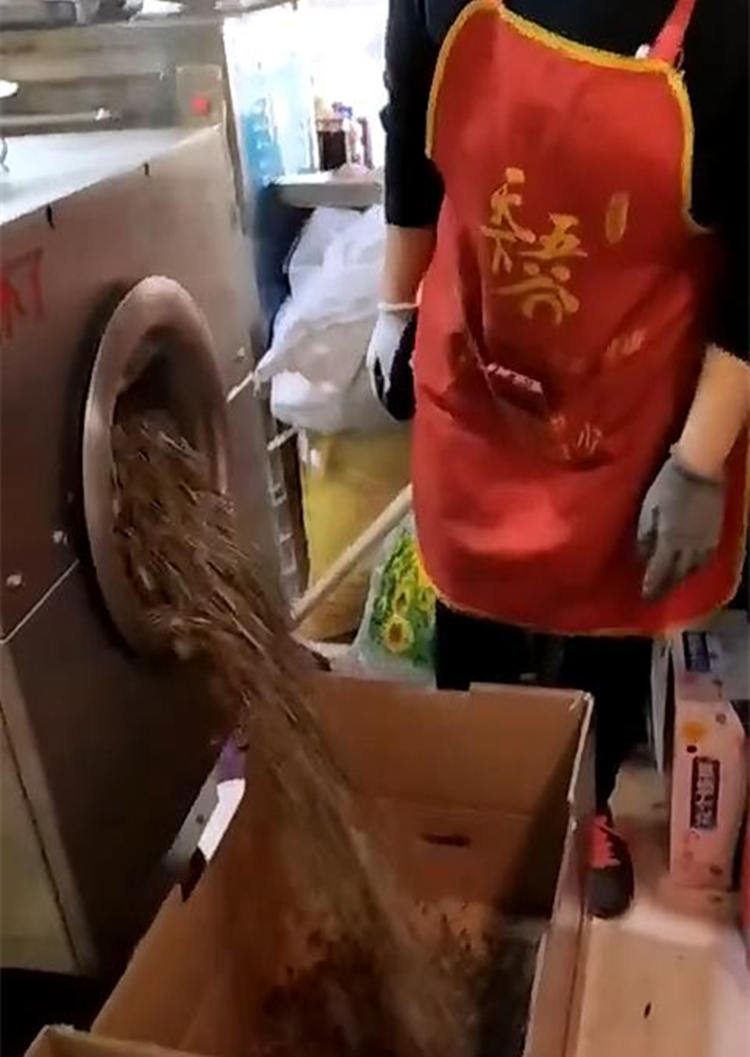 山東客戶在門(mén)店里使用許昌智工電磁炒貨機(jī)炒瓜子!