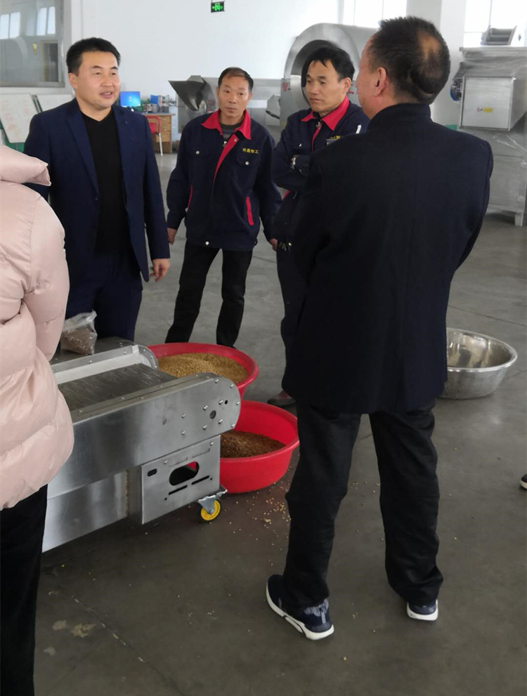 甘肅客戶一大早來到公司試機許昌智工電磁流水線設備炒制大麥芽,炒制成熟之后繼續(xù)深加工制作減肥茶,經(jīng)過 幾次炒制試驗客戶非常滿意炒制效果,對我們的許昌智工的電磁炒貨機也是贊不絕口同時發(fā)自內心的豎起來大拇指!