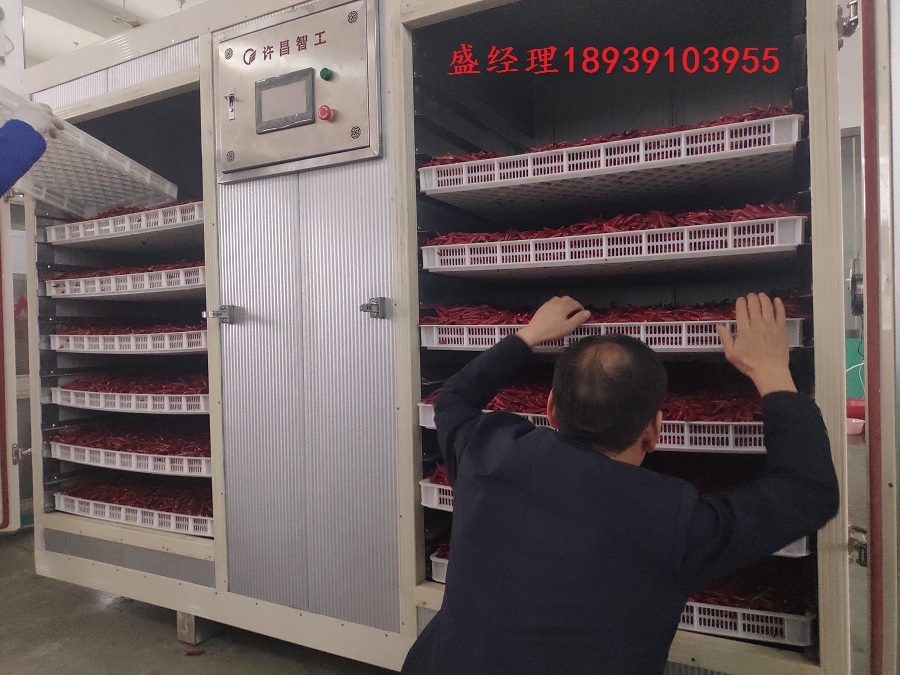 許昌智工 雙開門箱式烘干房 正在烘干辣椒