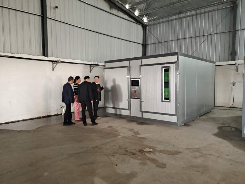 2020年10月份許昌智工機(jī)械制造有限公司董事長方青志先生一行到襄城縣井莊辣椒基地指導(dǎo)客戶用許昌智工生產(chǎn)的ZG-40框式烘干機(jī)烘烤辣椒。