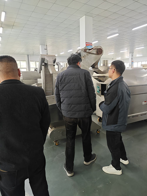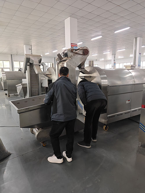 河南信陽客戶來許昌智工試機4米流水線炒瓜子